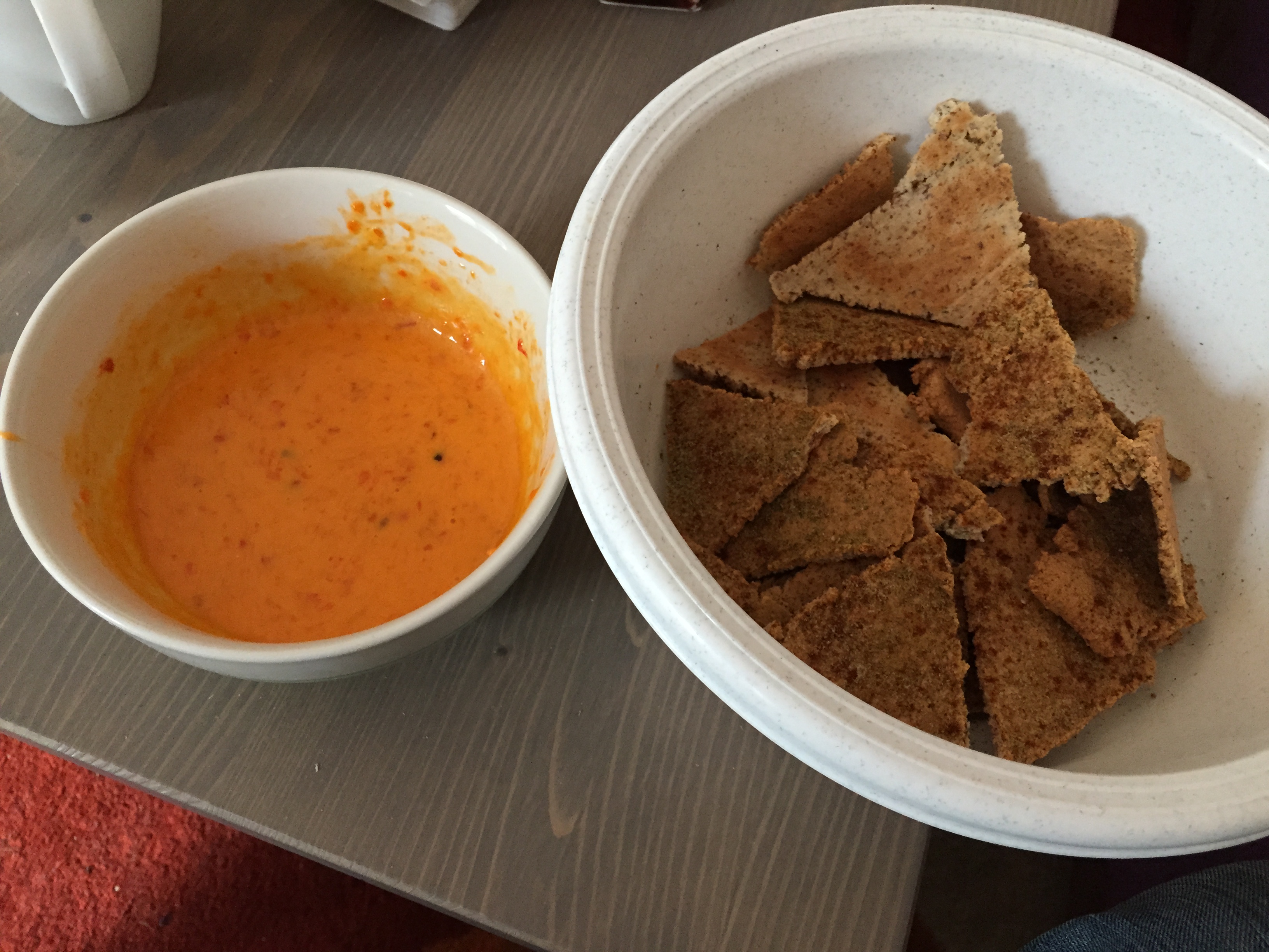 Es gab die Nachos von gestern, sind mit dem Dip echt MEGA sättigend und durch das Eiweißpulver auch stark in Sachen Protein! Hier das Rezept für die Low Carb Nachos mit Käsedip. Reicht übrigens noch für heute Abend! 😀 Aber mal sehen 😉