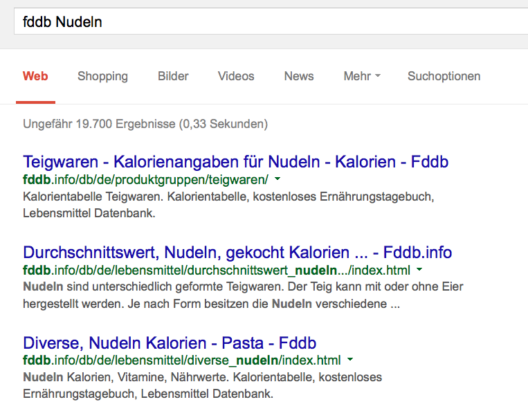 fddb nudelnSo sieht das dann aus. Dort findet man wirklich alles! Oder eben über Google auch auf andere Webseiten, wenn es speziell wird.